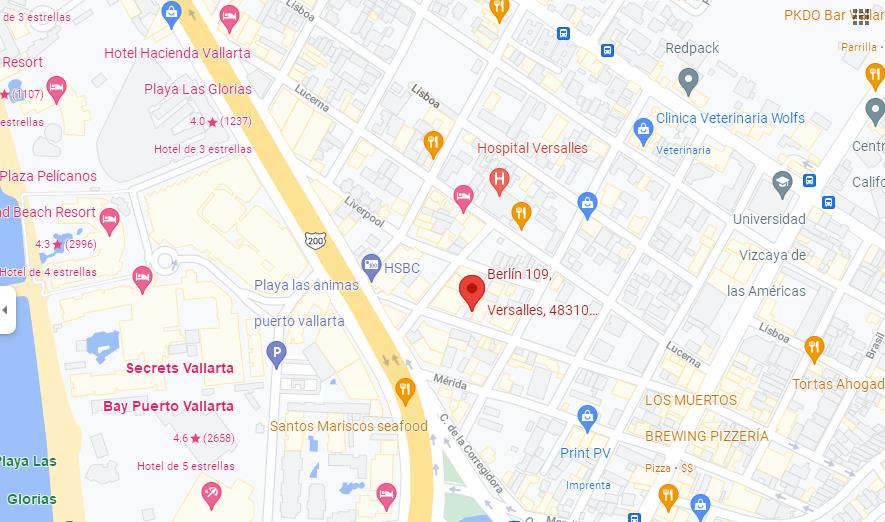 Estamos en Puerto Vallarta, Jal. Mex. Calle Berlin 109, Col. Versalles C.P. 48310 |